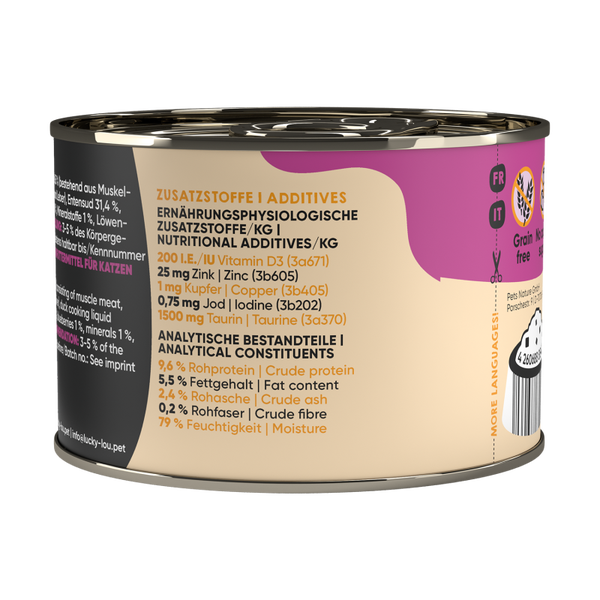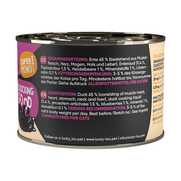 Klingt doch ziemlich super, oder? Deshalb darf das Alleinfutter für Super Cats auch MEINEN Namen tragen! Lucky Lou SuperMono². Und weil ich schlau bin, findest du in meinem Futter auch kein Getreide, kein Gluten und keine Zuckerzusätze. Ich bin eben ein Fan von echtem Geschmack!