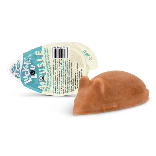 Thunfischsud 65,2 %, Thunfisch 30 %, Lachsöl 3 %, Tapiokastärke 1,5 %, Mineralstoffe 0,3 %
