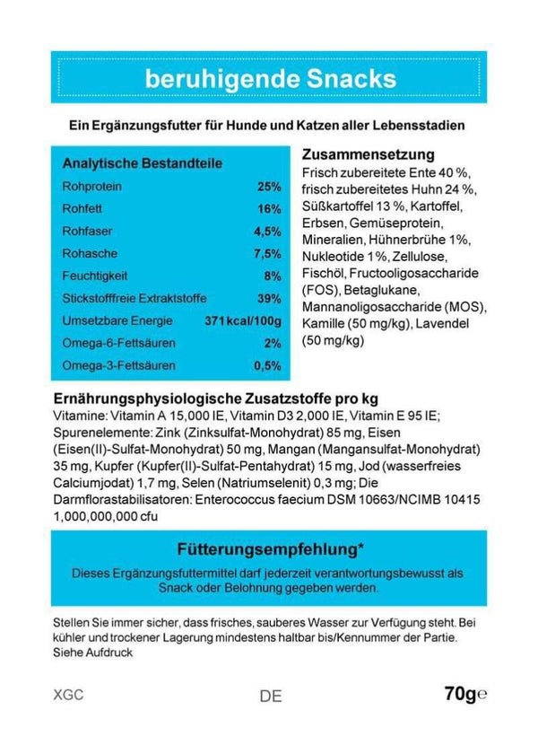 Der Zusatz von Lavendel und Kamille beruhigen deinen Hund auf natürliche Weise, dienen dazu den Magen zu entspannen und verringern Stress und Angst.