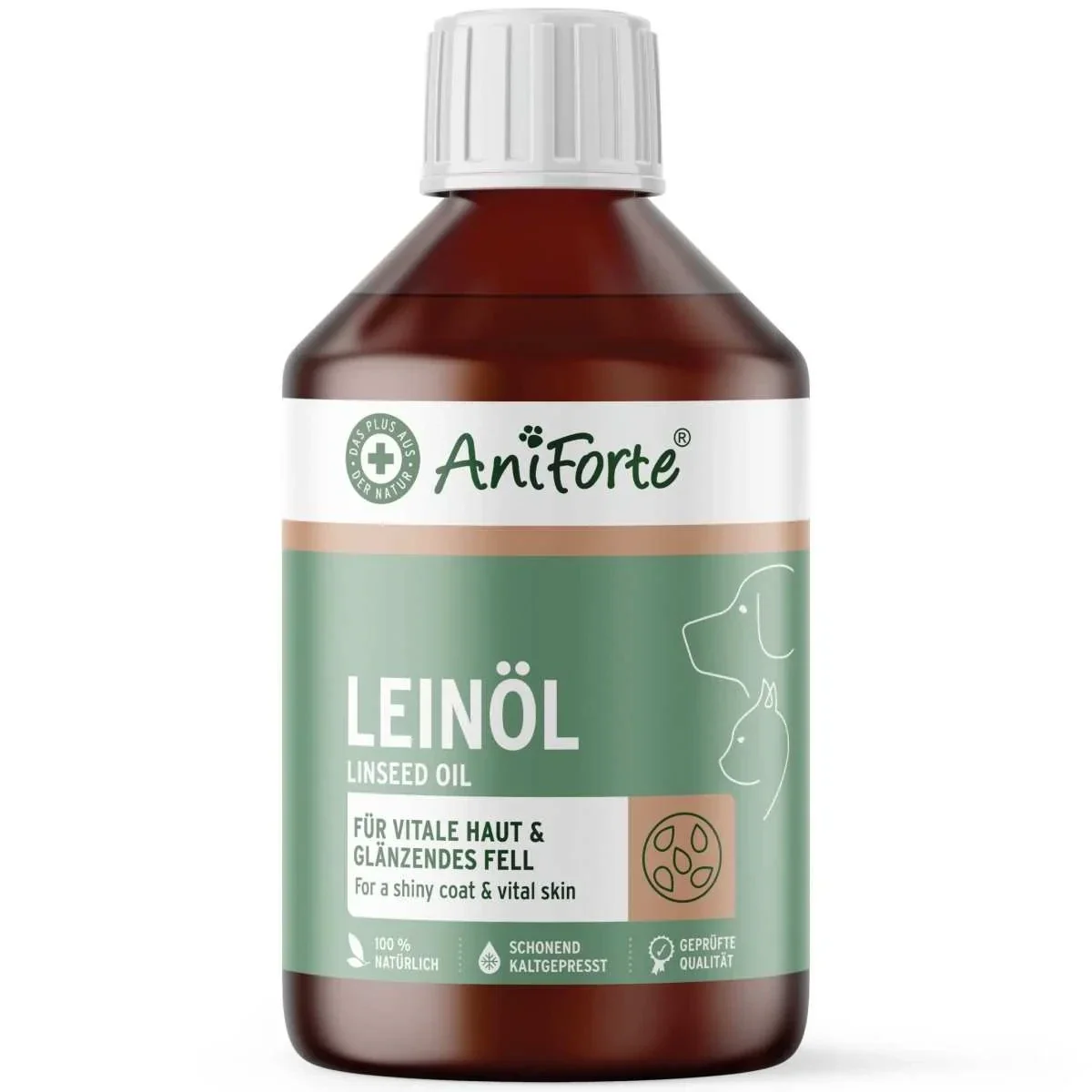 AniForte® Leinöl ist ein rein natürliches Produkt bester Qualität und wirkt sich positiv auf das Erscheinungsbild der Haut und des Fells aus. Deshalb ist die Fellpflege deines Vierbeiners somit kinderleicht. Durch das Verfahren der Kaltpressung und der schonenden Verarbeitung wird Dein Liebling mit wertvollen ungesättigten Fettsäuren in Lebensmittelqualität versorgt.