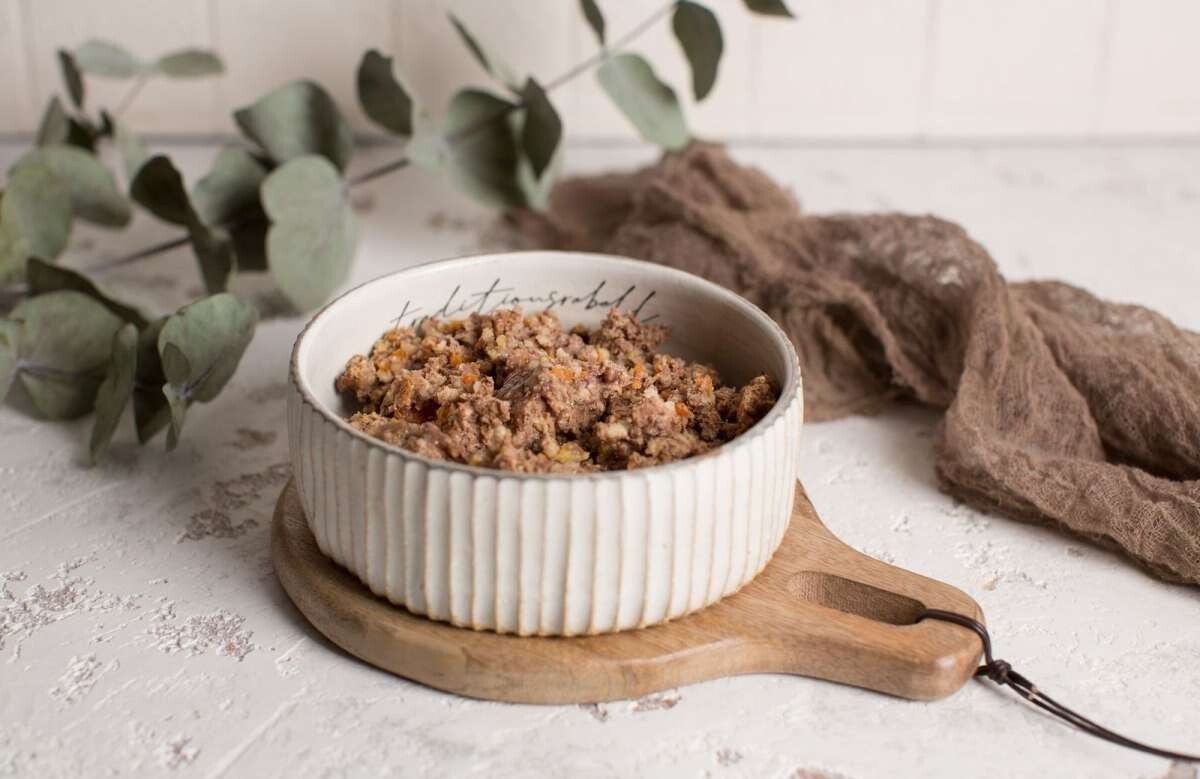 Wir haben unser Eingmachts weiterentwickelt und ein echtes Herzstück geschaffen, eine bedarfdeckende Vollversorgung auf Basis eines natürlichen Komplexes an Vitaminen, Ölen und Mineralstoffen, zusammen mit Ute Wadehn von der Barf-Gut-Akademie und strenger Laborkontrolle durch unser Partnerlabor. Unser Komplex enthält nur notwendige Komponenten und rundet unsere Menüs optimal ab und macht sie damit zu einem bedarfsdeckenden Futter. Individuelle Zusätze können natürlich noch ergänzt werden. Unser Fleisch wird in einer kleinen bayerischen Metzgerei verarbeitet und hat Lebensmittelqualität.