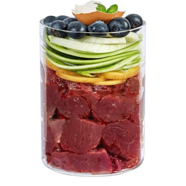 Muskelfleisch vom Pferd** (56%), Karotte, Kartoffel, Zucchini (7%), Brokkoli(4%), Sellerie, Cellulose, Erdbeere (2%), Heidelbeere, Rapsöl, MCT-Öl, Mineralstoffe, Kokosmehl** (1%), Kamille* (0,4%), Mineralerde*, Emiko® EM-Mischung (0,25%), Bohnenkraut*, Flohsamenschale*, Leinsamen**, Kümmel*, Schafgarbe*, Gingko*, Anis*, Andensalz, Seealge*, Austernschale* *getrocknet **hochverdaulich