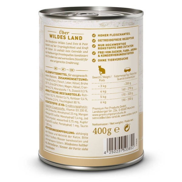 Die optimale Versorgung Ihrer Katze mit Wildes Land Nassfutter Ente & Pute mit Cranberries & Distelöl im Überblick: