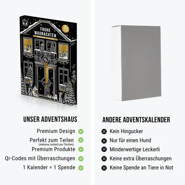 Unser festlicher und Premium-Adventskalender ist der perfekte Countdown bis Weihnachten – randvoll mit schmackhaftem Leckerli, softem Trockenfutter und unwiderstehlichen funktionalen Snacks. Jeder Tag bringt eine neue Überraschung!