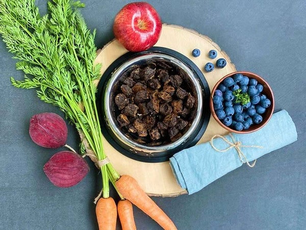Der Herstellungsprozess von FRESCO getrocknetem B.A.R.F. unterscheidet sich von allen herkömmlichen „Premium“ Trockenfutter. Anstatt die Inhaltsstoffe unter hohem Druck und hohen Temperaturen zu extrudieren (Schnellkochtopf), werden diese aufwendig luftgetrocknet. Zur Produktion von 1kg Trockenbarf verwenden wir bis zu 4kg frische Zutaten, da durch die Trocknung die Feuchtigkeit fast vollständig entzogen wird. Bei diesem Trocknungsprozess bleiben die lebensnotwendigen Nährstoffe aus den Ursprungszutaten erhalten.