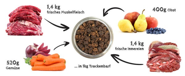 Wie viel Lebensmittel verwenden wir in 1kg Trockenbarf?