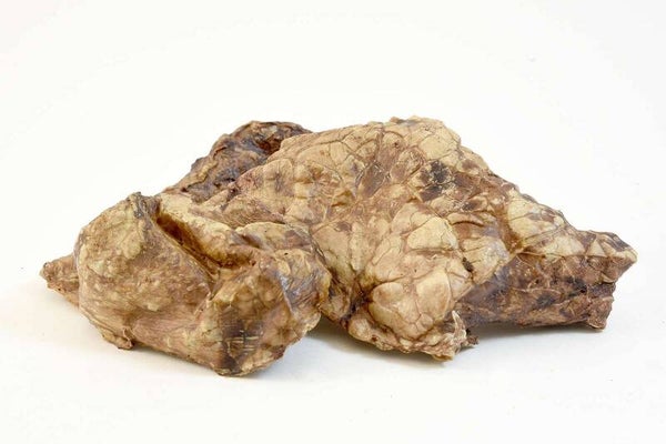 Die Lungenstücke vom Rind sind besonders mager und proteinreich. Proteine sind verantwortlich für den Aufbau und Erhalt von Organen, Muskeln und die Funktionstüchtigkeit von Enzymen. Sie sind ideal für Hunde mit empfindlichen Magen-Darm-Trakt. Durch die weiche Konsistenz auch bestens für Welpen und Senioren geeignet.