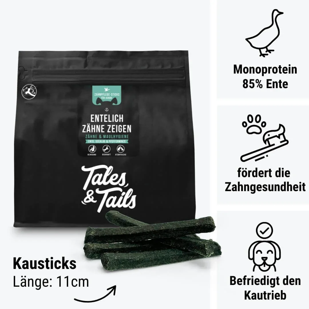 Jetzt strahlen die Augen deines Hundes mit seinen Zähnen um die Wette: Diese Snacks sind echte "Knabberstars" für ein sauberes Gebiss! Mit feiner Ente als