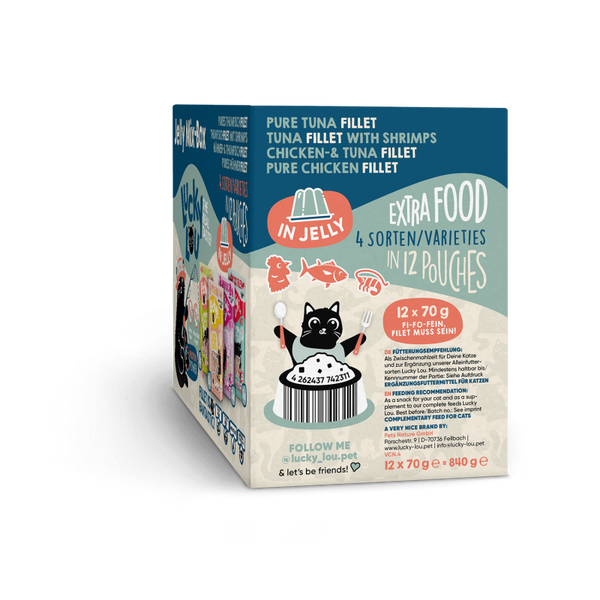 - 3x Lucky Lou Extrafood Thunfisch- & Hühnerfilet in Gelee 70g Pouch